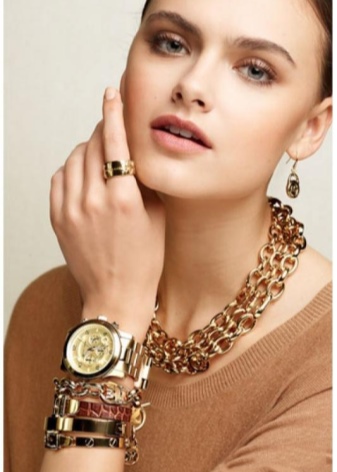 L'or té un aspecte excel·lent. Es pot combinar amb èxit un vestit d'estiu clar amb una delicada joieria d'or i un rellotge gran.