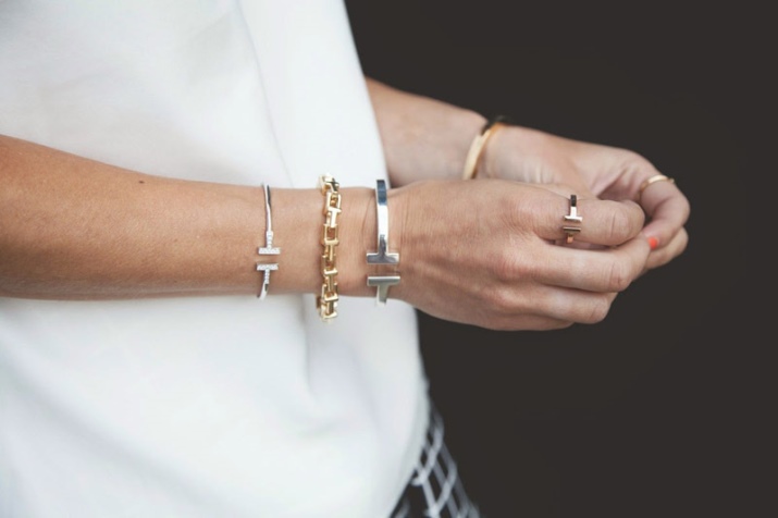 Una polsera amb anells té un aspecte aeri i sofisticat, una mena de cèrcol format per diversos elements. La forma preciosa dóna lloc a la imaginació i permet crear molts conjunts bonics.