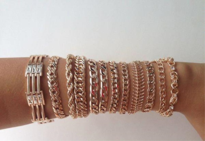 Aquesta temporada, els productes amb pedres i minerals ocupen correctament el primer lloc, perquè sempre es van apreciar pedres precioses. Els braçalets d'or amb diamants i zirconis cúbics són el primer lloc de la llista de dones amb èxit.