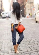 Els pantalons prims suggereixen que s’han d’encaixar i no penjar-se com models més amples. Per descomptat, no han de causar molèsties, pessigar-se en cap lloc, cosa que pot passar si hi ha una banda elàstica a la part inferior de les cames o al cinturó. Fixeu-vos en les costures: han de ser no només duradores, sinó també nets per no causar molèsties en contacte amb la pell.