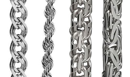 La cadena és un dels accessoris més antics, conegut fins i tot en temps antics.. Anteriorment, era un indicador d’estat elevat i benestar financer. Avui en dia, la cadena és una decoració universal que es pot portar per separat, o es pot decorar amb un bonic penjoll, creu o figureta. L'assortiment de productes de plata és enorme, però el primer que es diferencien entre ells són els diferents tipus de teixit.