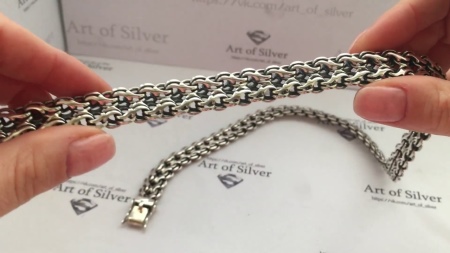 El mètode de màquina de teixir els enllaços és relativament jove. Aquí tot és senzill, el mètode està totalment automatitzat. La plata es fon, després de la qual s’estira i s’obté un filferro, a partir del qual posteriorment es fan els enllaços. El següent pas és enllaçar la màquina dels enllaços a una cadena. Aquest tipus de treball s'utilitza per a cadenes d'estil clàssic, fortes i duradores.