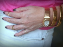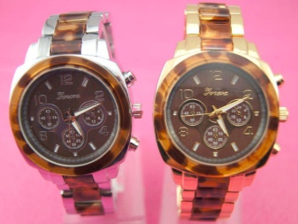 - Un rellotge gran, similar al dels homes amb un esfera gran, una polsera massiva. Popular entre els fashionistes, es veuen sexualment en mans primes.