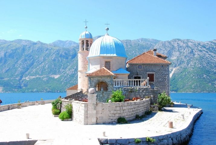 En primer lloc, l’illa de la Verge: origen artificial. Segons la llegenda, dos germans van trobar en aquest indret la icona de la Mare de Déu, que ara es troba a l'església, sent l'amulet de Perast. A les parets de l’església s’emmagatzemen rajoles d’argent i d’or deixades pels mariners abans de les campanyes. L'església és sorprenent en desenes de pintures escrites al segle XVII pel famós mestre Tripo Kokol.