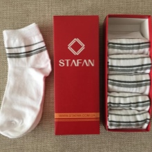 - També era important que els consumidors tinguessin cura d’un producte tan poc pretès com els mitjons. A causa de la seva gran durabilitat, els mitjons Stafan són completament poc prudents en el rentat i assecat. El mode de rentat només pot dependre del material amb què es fabriquen els mitjons.