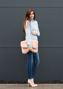 - Una tonalitat rosa pàl·lid pot reemplaçar-lo idealment per coses de color blanc de neu. Aquest color complementa perfectament totes les tonalitats de colors freds i clàssics. Al mateix temps, destaca la seva naturalitat. Combina rosa pàl·lid amb blau fresc i groc pàl·lid. Afegiu notes brillants a la vostra imatge amb l’ajuda d’accessoris verds, blaus o turquesa.