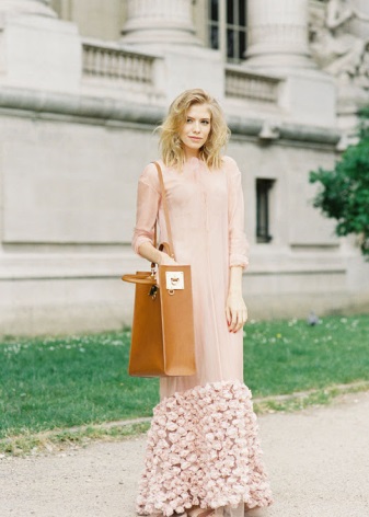 Universalment una combinació: rosa i beix. Els vestits d’aquests colors sempre es veuen especials i elegants. El beig restringit millorarà i el rosa li donarà suavitat. Aquestes imatges es poden utilitzar tant per a dates de treball com de nit. Per a un estil informal, els colors més vius s'adaptaran.