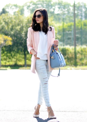 Les jaquetes de tons rosats complementaran perfectament els clàssics pantalons de color blanc o gris. Un vestit d'estiu de chintz, combinat amb un vestit de color rosa pàl·lid, tindrà un aspecte espectacular i fàcil.