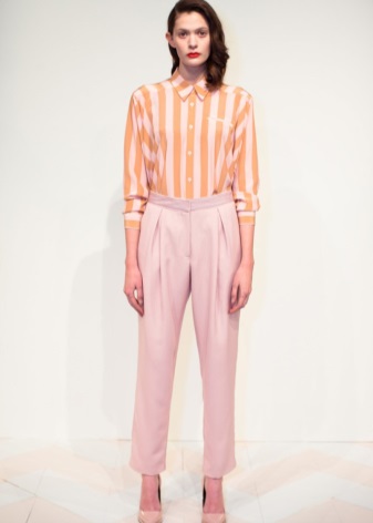 Les samarretes de dril, pantalons curts i pantalons es poden complementar amb bruses o faldilles de color rosa. Però en aquest cas és millor triar tons pàl·lids de rosa, ja que els brillants començaran a "discutir" entre ells.
