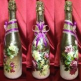 De fet, no hi ha res complicat en crear un element interior original. Per als principiants, aquest procés pot plantejar algunes preguntes, però amb el pas del temps, tot es torna més que clar. A continuació es presenta una classe magistral sobre el decoupage d’ampolles de xampany amb les teves pròpies mans.
