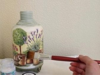 El tema del decoupage pot ser absolutament qualsevol, tot depèn de la vostra imaginació. Podeu triar tovallons de paper normal, creant ampolles elegants que es poden col·locar amb èxit a les prestatgeries superiors del conjunt de cuina. Ara hi ha l’oportunitat de comprar tovallons amb un tema específic. Per exemple, les ampolles amb la imatge d’un paisatge d’hivern o del mateix Pare Noel semblen increïblement boniques. Una natura suau amb flors exquisides serà una excel·lent ocasió per a un bon humor en previsió de la primavera.
