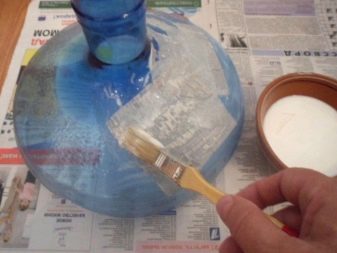 - A continuació, cal recobrir la superfície de l’ampolla amb un imprimador de manera que la següent capa es mantingui de manera més fiable. Després que l’agent s’hagi assecat completament, comencem a utilitzar pintura acrílica. El seu color s’ha de triar de manera que es combini amb èxit amb l’ombra de la tovallola de paper que heu triat: la pintura ha de ser almenys un to més clar que el paper. Sovint s’utilitza pintura blanca bàsica. Deixeu que s’assequi el temps.