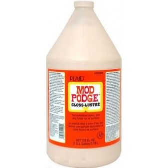 Considereu algunes de les marques més populars. Per exemple, es diu cola decoupage Pla de mod podge fabricat als EUA i s'utilitza només per a la decoració de productes sòlids. S'asseca en les 72 hores posteriors a la finalització del treball i ofereix al producte un acabat mat.