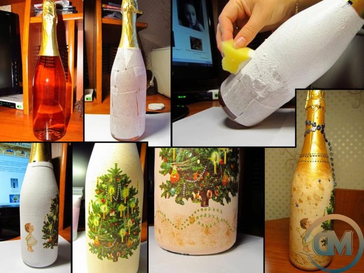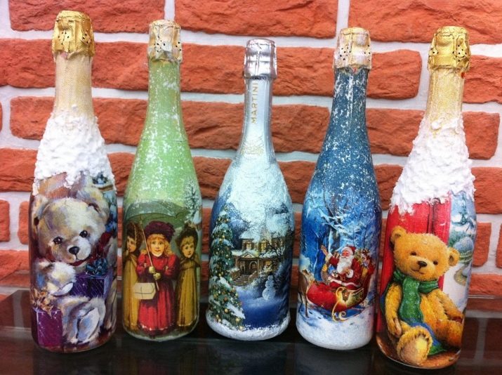 A més, les ampolles decorades amb la tècnica de decoupage poden ser un gran complement a un regal per a unes determinades vacances. Després d’haver recollit tovallons amb els temes necessaris, presentaràs un regal original i sens dubte agradarà als seus éssers estimats.
