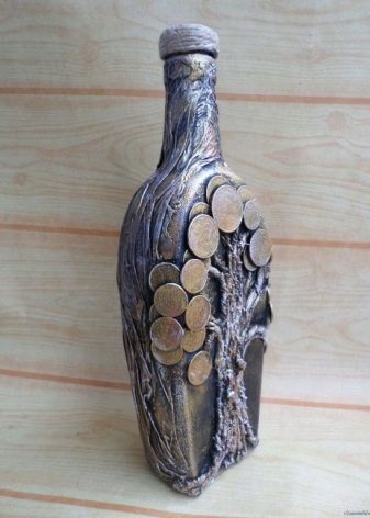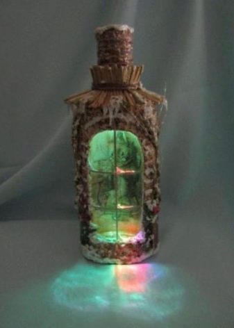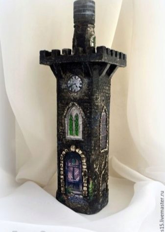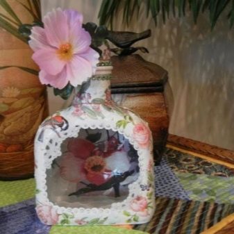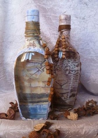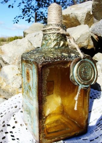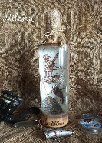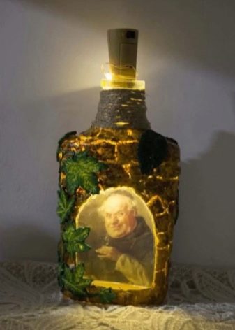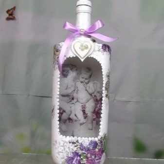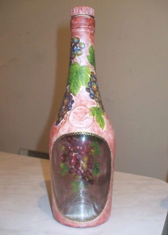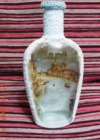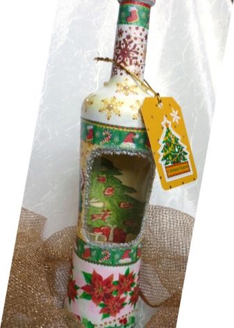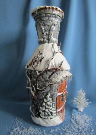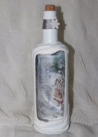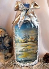 - Feu un decoupage no només a la finestra, sinó que també decoreu tota l’ampolla amb aquesta tècnica. El més important és que les imatges hagin de tenir el mateix estil.