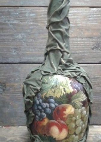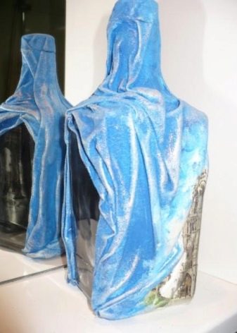 - També es pot decorar una ampolla amb finestra amb un drap. I perquè la matèria mantingui la forma, s’ha d’impregnar de cola.
