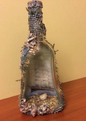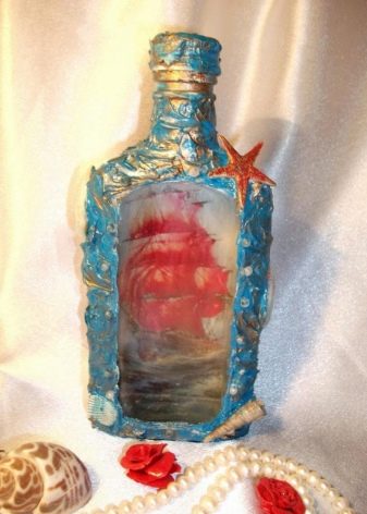 - Per a una ampolla d'estil marí, també podeu utilitzar regals de mar en forma de petxines, perles i estrelles com a decoració.