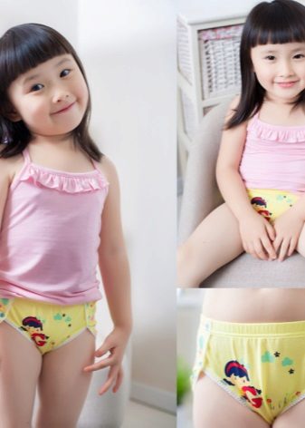 Els fabricants de roba interior també intenten seguir les tendències de moda dels nens. Cada vegada apareix la roba amb encaixos i bells acabats, arcs i pedres de pedra. Al recorregut del curs amb princeses i inscripcions divertides.