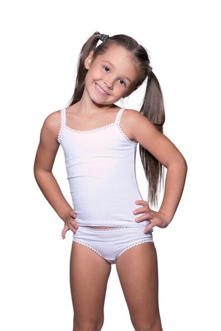 Els models de roba interior per a noies es presenten en diverses versions, des del senzill bàsic fins al més bonic, amb llaços i estampats.Els models per a nenes estan representats per diferents personatges de dibuixos animats.