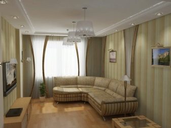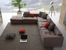 - El sofà de la cantonada, la forma del qual repeteix la lletra "G", només trobarà el seu lloc a la cantonada lliure de l'habitació. Si no s’hi trobava, caldrà molt de temps per equilibrar l’interior de tal manera que aquest moble s’adapti de manera harmònica i no sembli superflu a la imatge general.