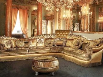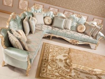 - Rococó. Un estil acolorit i inusual per al qual és adequat un sofà d’elit lluminós amb detalls d’or, bronze o plata. Talla, cames corbes, luxe ostentós són benvinguts.