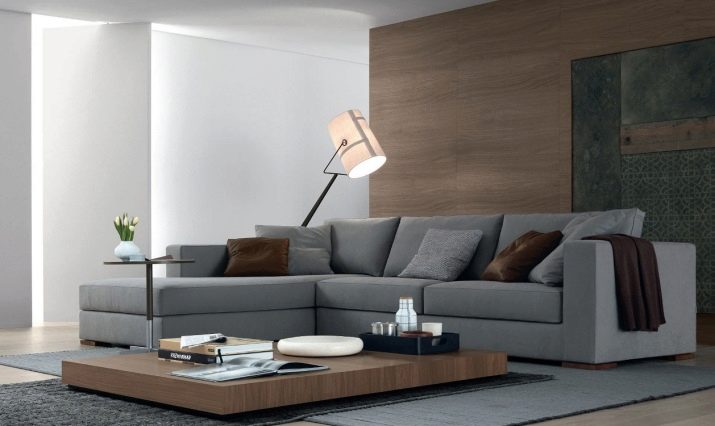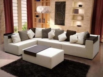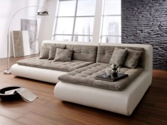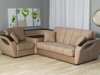 En els centres de mobles encara podeu trobar diversos models de sofàs de cantonada, complementats amb diversos components funcionals. Pot ser una taula integrada, un centre de música, prestatges oberts o tancats i molts altres detalls útils.