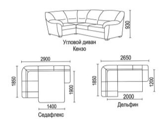 Les mides també varien. Els sofàs de cantonera són petits i enormes, de gran profunditat. Molt sovint a les botigues podeu trobar casos amb paràmetres: