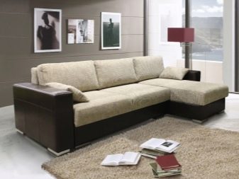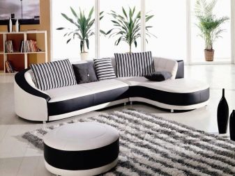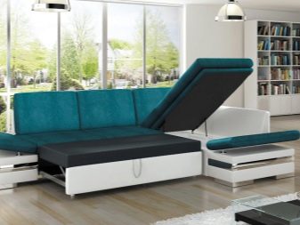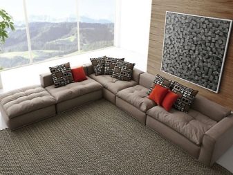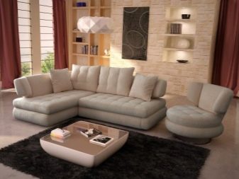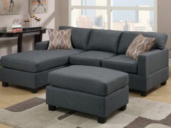 - Populars i moderns sofàs de secció amb pouf lateral. Aquest últim es pot utilitzar en qualsevol posició convenient. Normalment el pouf es fa amb el mateix disseny i color que el sofà.