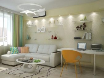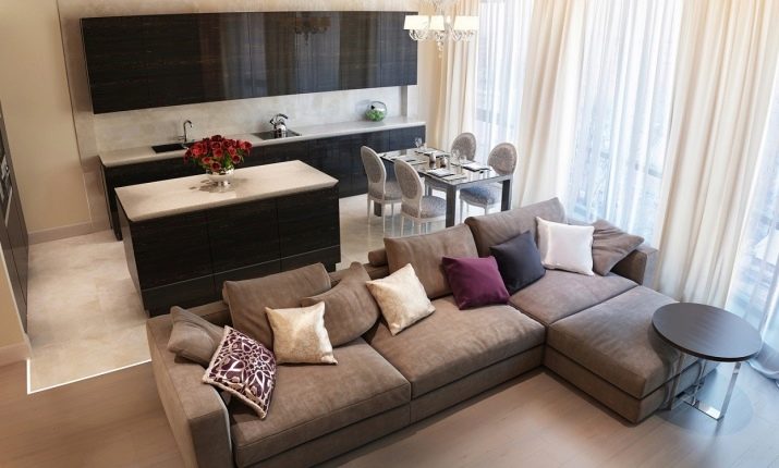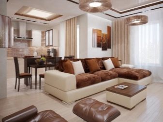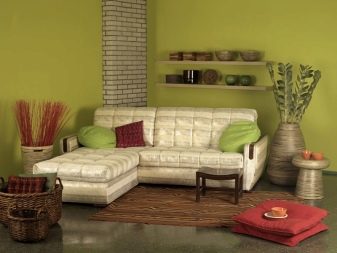 - Utilitzant el sofà de la cantonada podeu dividir visualment l’espai d’existència existent. Mitjançant el moble en qüestió, és possible zonificar de manera eficaç l'espai habitable, sobretot si es tracta d'un apartament d'estudi en el qual no hi ha envies estàndard.