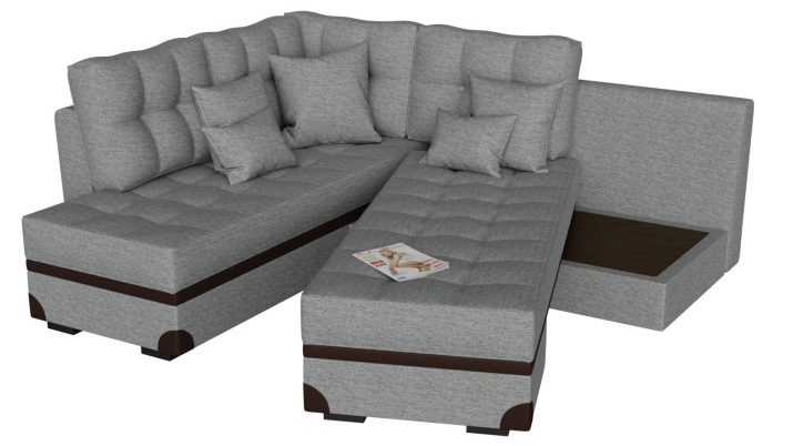 - En moltes botigues podeu trobar sofàs de cantonada de qualitat amb l’otomà. Aquests models es presenten en un ampli assortiment. Segons les revisions dels usuaris, aquests casos eren més convenients que els dissenys simples sense otomà.