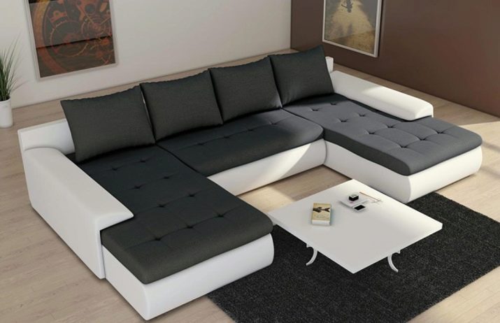 - En forma d’U. No és menys popular el model equilàter, però requereix molt més espai lliure. En una habitació petita, és probable que no s’entregui un sofà de dues cantonades.