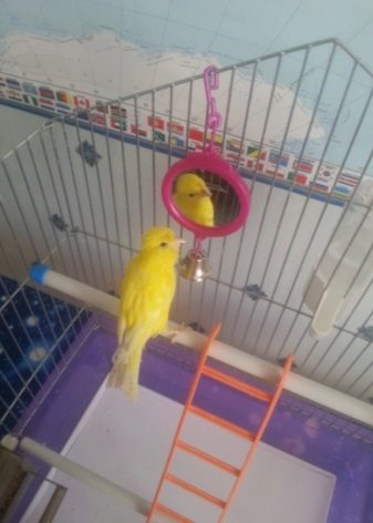 Perquè el canari no se senti trist durant l’absència del propietari i sempre sàpiga què fer, és imprescindible posar diverses joguines a la gàbia a l’ocell: un petit mirall, campanes, cases especials, així com perxes sobre les quals descansaran i jugaran els ocells.