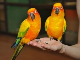 - Aratinga. Molts criadors sense experiència confonen aquests increïbles ocells amb guacamayos. Aquests lloros van obtenir el seu nom inusual a causa del seu excepcional color multicolor. Els colors principals del color arting són els colors groc i taronja, però la saturació d’aquests tons depèn de la varietat del lloro. La llar d’Arathing ha de ser prou espaiosa perquè pugui estendre les ales.