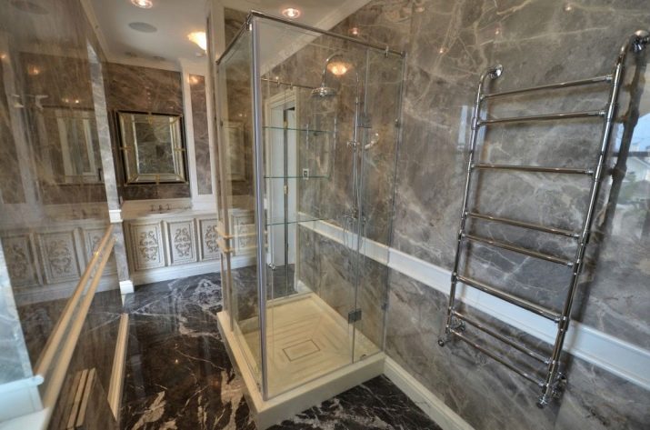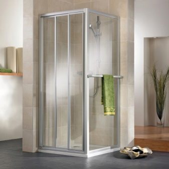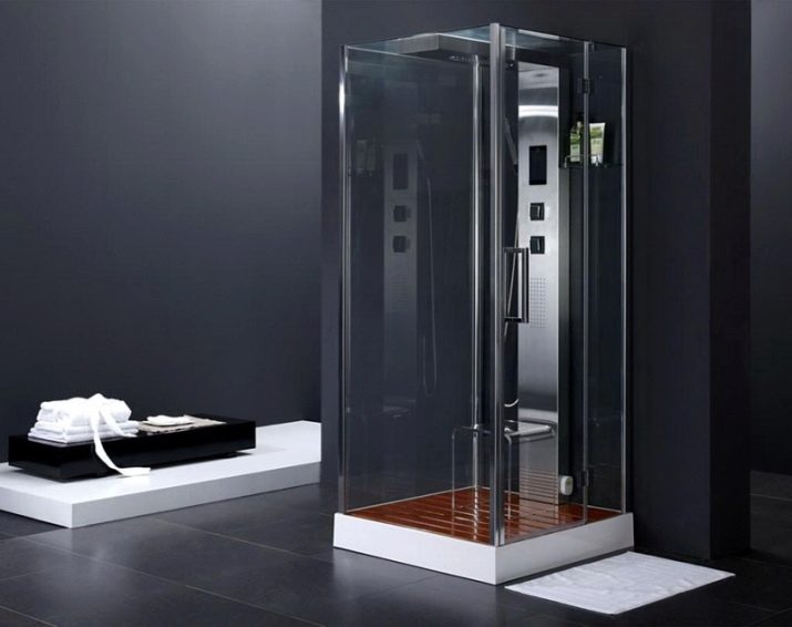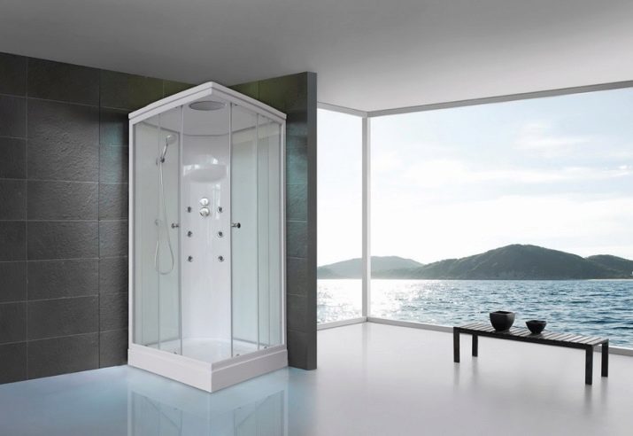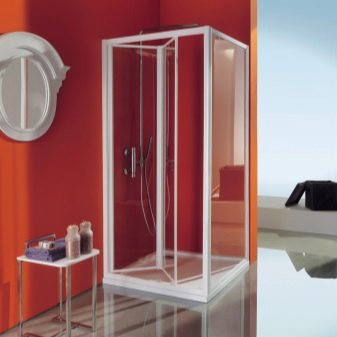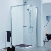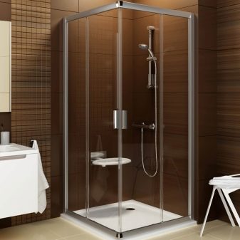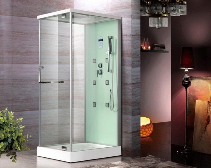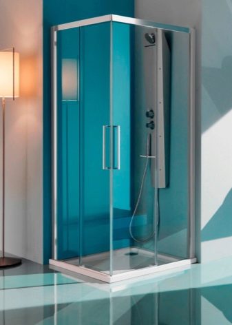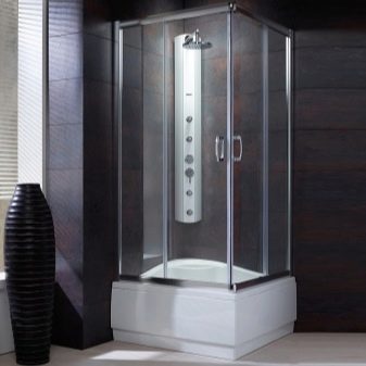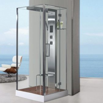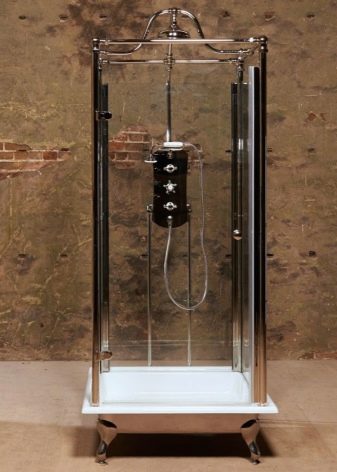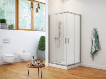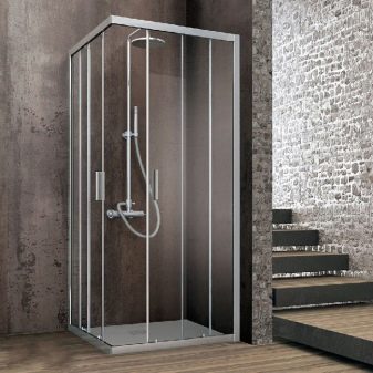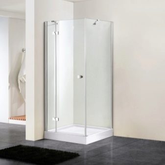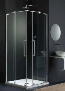 Dutxes de base quadrada donar una opció més àmplia de la ubicació de la construcció. Es poden instal·lar no només a la cantonada o al llarg d’una de les parets, sinó fins i tot al centre de l’habitació.