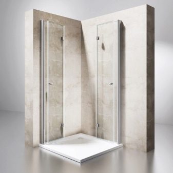 Bisagra: el tipus de porta més simple i fiable. Si instal·leu una cabina de dutxa amb aquest tipus d’estructures, heu de tenir en compte la quantitat d’espai que ocuparà una porta oberta: de manera que no causi grans molèsties, hauria d’haver suficient espai lliure a l’habitació.