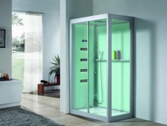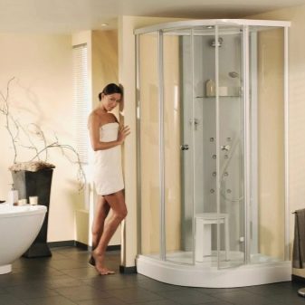 - Sortint. Les cantonades, a causa de l’equip amb diverses funcions addicionals, requereixen un manteniment acurat i freqüent, i les cabines de dutxa de vegades són suficients per eixugar-les amb un drap humit. La part principal del disseny de dutxes és l’acrílic. És fàcilment brut i difícil de rentar. Tot i això, les cantonades no tenen aquest problema: el vidre és molt més fàcil i convenient de cuidar, malgrat algunes dificultats per rentar-lo.