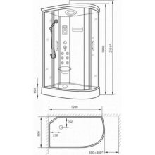 Passa que el bol de la paella no quedi a la zona preparada per a això, i les ales, fins i tot si en treieu la visera, no s’ajusten a l’habitació a l’alçada. En alguns hidroboxes, l'alçada del palet no supera els 40 cm, per tant, amb parets de cabina estàndard - 175 cm, l'alçada de l'estructura correspon a 115 cm. Donada la necessitat de deixar almenys 15-25 cm al sostre, resulta que la longitud de les parets de la sala hauria de començar a partir de 235 cm o més, en cas contrari, el disseny simplement no hi cabrà.