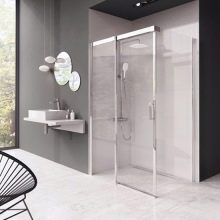 - textura diversa de materials - Ravak utilitza vidre i poliestirè (plàstic de nova generació) per produir tancaments de dutxa;