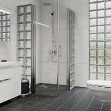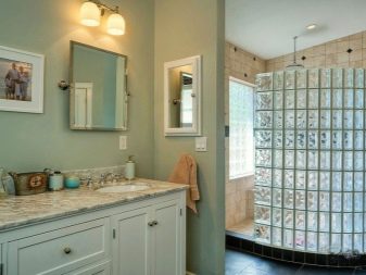 A banda de l'ús en banys petits per estalviar espai, l'ús de blocs de vidre en la instal·lació d'una cabina de dutxa es justifica si l'estil general de l'apartament és modern. Els murs i els envans de maons de vidre són força rellevants si els propietaris de l’apartament agraden tendències estilístiques com l’alta tecnologia, l’eco, l’art pop, el modernisme, l’urbanisme o el minimalisme.