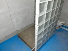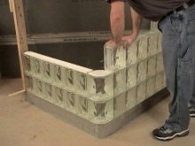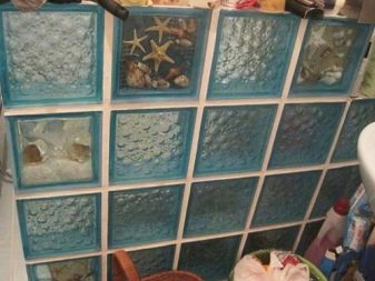Si opteu per una escala de desguàs, aleshores totes les idees originals per crear un producte a partir de blocs de vidre són possibles, perquè de fet, un palet adquirit sempre limita la possibilitat de configurar una cabina.