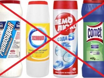Per tant, per netejar o refrescar l’aspecte de les parets i les particions de l’estructura tots els detergents utilitzats per a banys, embornals i superfícies de rajola són acceptables. Una excepció són els pols especials de neteja que contenen components durs que determinen les seves qualitats abrasives. Una composició així pot danyar la superfície del vidre deixant-la amb rascades lletges.