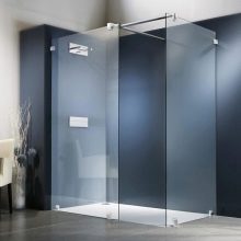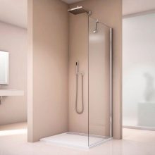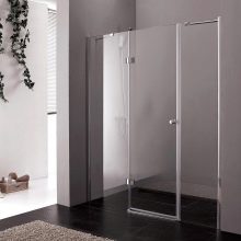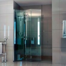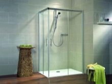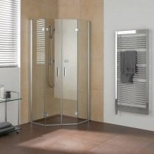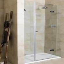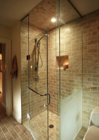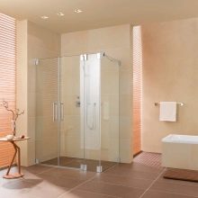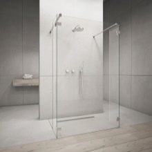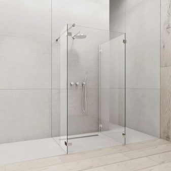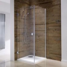 - Particions solucionades. Apte per a habitacions grans i petites. Els models més comuns són angulars. Amb aquest mètode de fixació, el vidre es fixa a les parets i al terra. Per a un ús normal de la dutxa, les seves dimensions no han de ser inferiors a 90 cm.