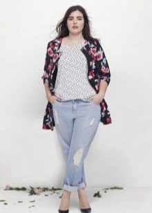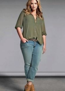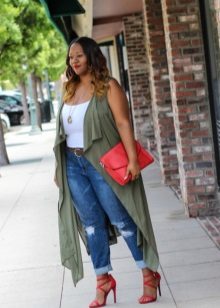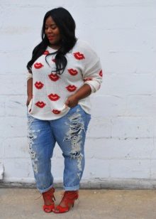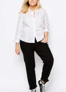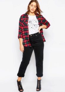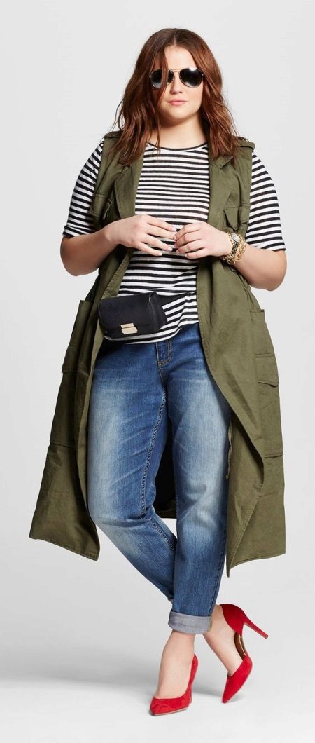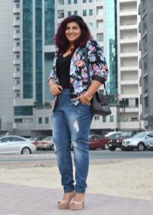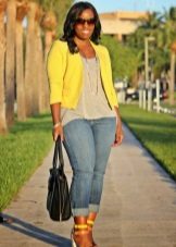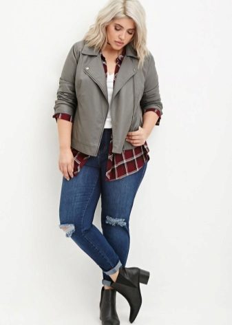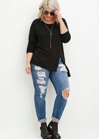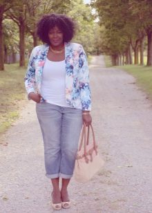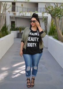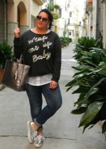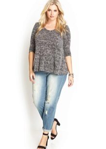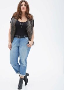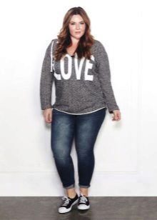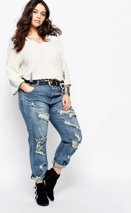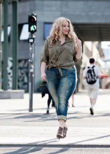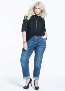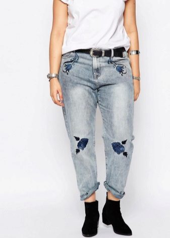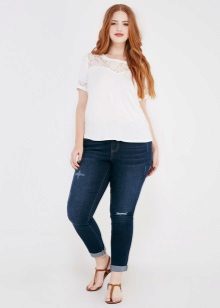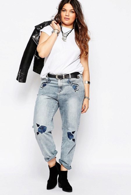 Els models de jeans per a dones completes han de tenir un nombre mínim d’elements decoratius. Gràcies al tall lacònic i a la falta de joies, els texans aprimen la figura. Les excepcions són ratlles o costures decoratives situades verticalment. Aquesta decoració ajudarà a reduir visualment el volum de qualsevol zona.