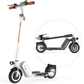 - Airwheel Z5. Scooter elèctric ultra compacte amb roda davantera inflada, moderna forquilla amortidor. El model admet la integració amb l'aplicació d'ajust de la configuració, té una autonomia de 30 km, és adequat per a usuaris que pesen fins a 120 kg. Un pes lleuger (només 11 kg) i un disseny elegant el converteixen en un dispositiu preferit de la joventut.