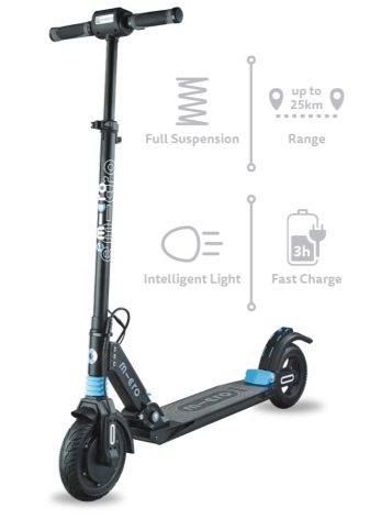 - Razor E3000S. Scooter elèctric amb un interessant disseny, un desnivell força elevat, una reserva de potència de 40 km. Les rodes grans, amb mugró de cotxe i amortidors de gran qualitat, permeten superar amb suavitat les petites volades. El kit inclou un puny ergonòmic per al volant.
