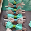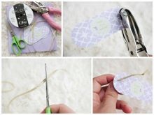 - Amb un forat (podeu fer-ne un), feu forats a partir de dues vores. Estireu una cinta fina pels forats. També cal seleccionar-la perquè es combini amb un tovalló i un suport.