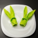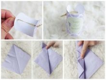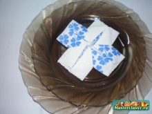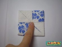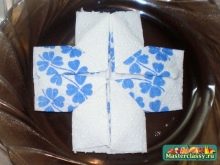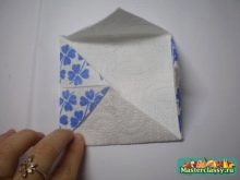 - doblegar el producte de paper dues vegades, el resultat és de 4 capes: després de plegar, el tovalló ha de quedar cap a fora;