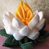 Doblegar el tovalló d'aquesta manera és molt fàcil. Es pot col·locar en un plat el producte en forma de lotus: