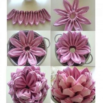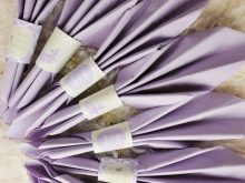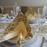 Tingueu en compte que hi hauria de tenir una gran quantitat de tovallons de paper a la taula. Podeu jugar amb les formes. Doblegar tovalloletes individuals d’una manera i tovalloletes comunes en una altra. Però també podeu experimentar amb colors. En molts esquemes, podeu utilitzar productes multicolors o només dos productes de diferents colors.