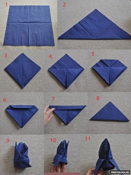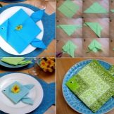 L’estudi d’instruccions i esquemes senzills ajudarà a fer més solemne la porció amb tovallons de paper ordinaris. Utilitzeu figures boniques per crear un ambient especial durant senzilles reunions a casa. Durant la taula de festes, els productes ajudaran a destacar l’ocasió en què es van reunir els convidats.